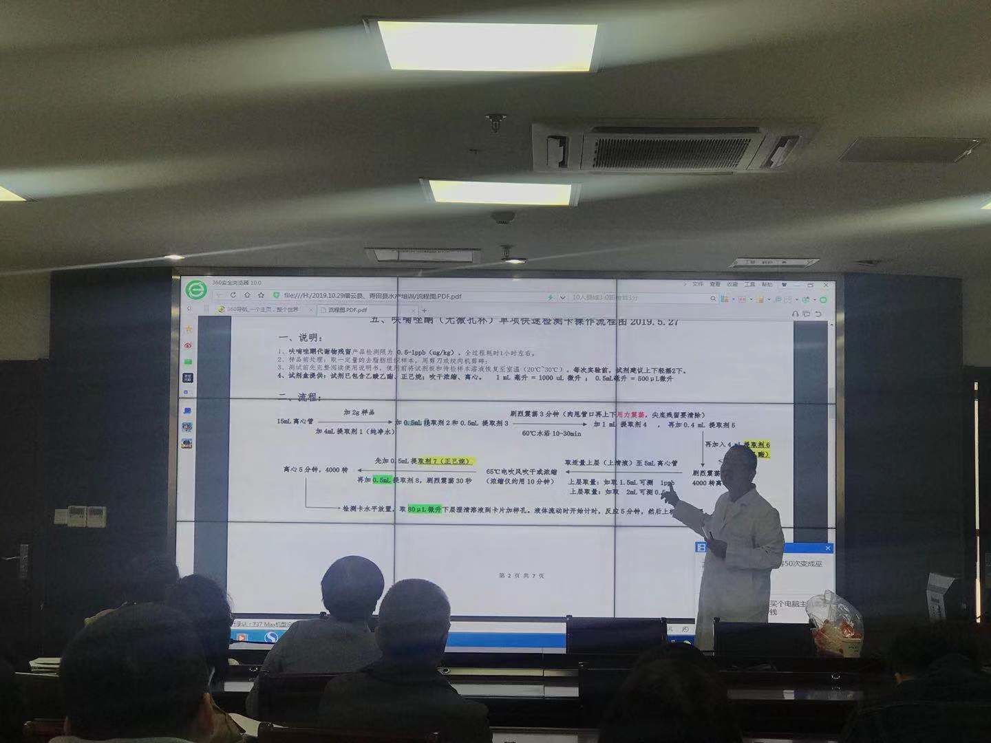 2019年10月30日,我司工作人员受邀于丽水市缙云县农业农村局开展水产品质量安全检测培训交流。会上,根据监管要求,我司着重介绍了检测原理并现场邀请部分学员进行操作实战,配合当地监管工作将检测数据上传到了浙江省农产品质量安全追溯平台。