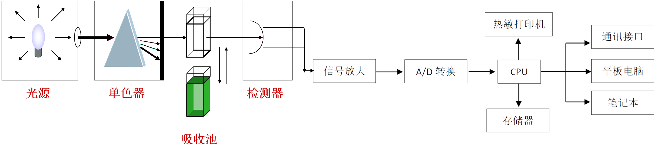 检测仪是根据食品中的有害物质分子对可见光的选择性吸收和朗伯-比尔(Lambert-Beer)定律,用未知浓度样品与已知浓度标准物质比较的方法进行定性鉴别或者定量分析的检测设备。